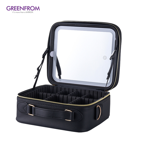 Borsa trucco da viaggio con 3 luci di colore ricaricabile borsa cosmetica impermeabile con specchio a Led